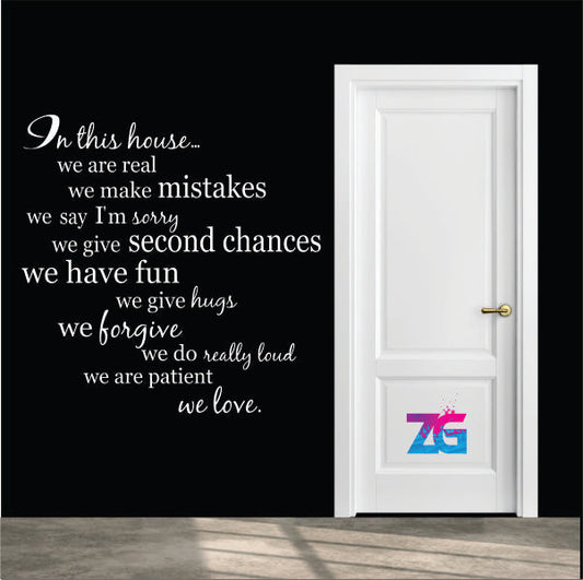 Valores familiares: en esta casa somos reales, cometemos errores | Etiqueta engomada del diseño de la pared
